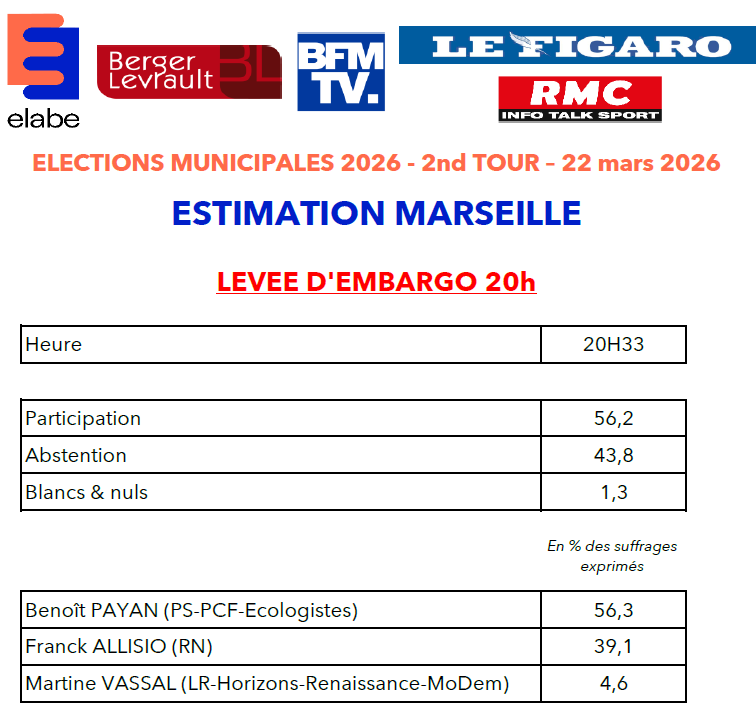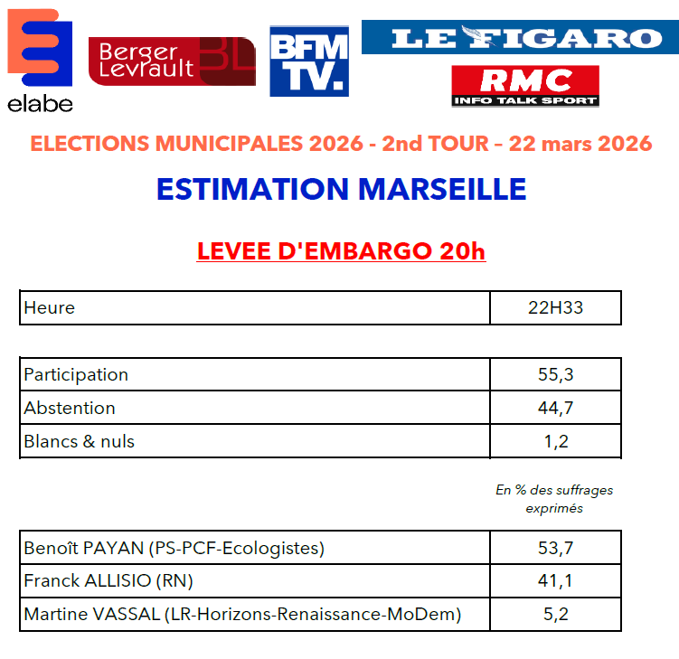 Télécharger le document ici : Estimations_ELABE_BERGERLEVRAULT_BFMTV_LEFIGARO_RMC_2NDTOUR_MARSEILLE_22H33